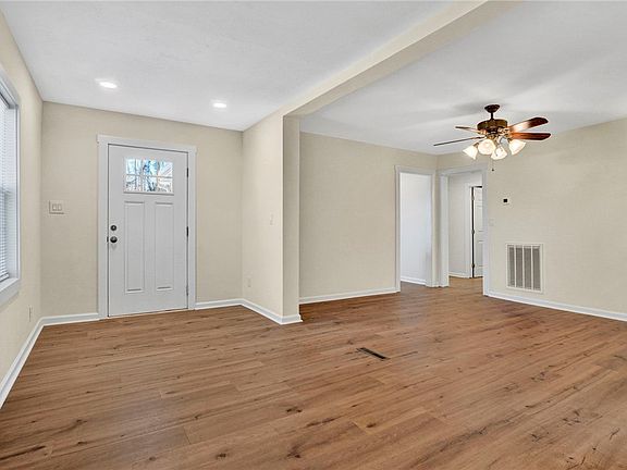 All the work has been done for you in the beautiful one story home! The roof was installed in 2024. The HVAC was new in 2021. Check out the updates from top to bottom! With over 1700 square feet, three bedrooms, and two bathrooms, you have all the space you need! Walk into the large foyer area and appreciate the laminate floors, multiple windows and large rooms. The living room is first and has a gas log fireplace with masonry floor to ceiling. The large kitchen boasts tons of cabinets and counter space, granite counter tops, stylish stainless appliances, new white cabinets and a large window overlooking the yard. The primary bedroom has its own full bathroom with double sinks and stand up shower. The split floorplan ensures privacy. The secondary bedrooms are large and share the additional full bathroom with a storage cabinet and unique brick accent wall. The utility room off the kitchen has tons of room for storage, mudroom area, and laundry room. Outside the new front patio is a great space for rocking chairs. The detached garage is a perfect spot for your workshop, parking your car, RV or boat. This nice corner lot is .70 acres with tons of room for gardening or a few chickens. Less than 10 minutes from downtown Pickens and coffee shop, restaurants and Main St. A short drive to downtown Greenville or Easley. In close proximity to area lakes, campgrounds and parks. Call today and take a look at this affordable updated home.