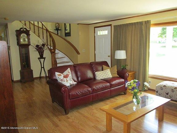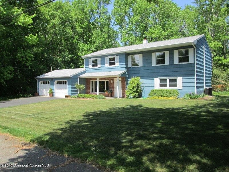 Pristine, beautifully maintained 5-6 bedroom 2.5 baths Colonial. Exceptional location. Quiet wooded dead-end street. Office (or bdrm)on 1st floor. Large bright LR w/huge picture window & elegant staircase. Spacious light DR w/wall unit matching color of kitchen wood cabinetry. Cozy FR w/French doors opening to brick circular patio & stationary gas grill. Wood floors throughout. Ceramic in kitchen. Radiant heat makes your floors warm in winter time. Eat-in renovated kitchen w/ceramic countertops and attached island. 2-car attached garage. Painted cedar siding, 2012 shingle Roof! 2006 2-zone Furnace & W/Heater. Newer A/C. Exclusive privacy. Large back yard to relax after a working day or to entertain family & friends. Close to fabulous Jersey beaches, malls, GSP & Rte.18 Move in and ENJOY!
