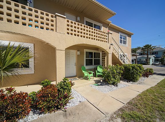 Seasonal. Enjoy breath taking sunsets on the top rated quartz sand beaches of Anna Maria Island. This 2 bedroom, 1 bathroom condo is located steps from the beach and offers outstanding Gulf Views. The condo is fully equipped with all linens, bath towels, beach towels, beach chairs, washer and dryer, flat screen TV in master bedroom and living room, WiFi, BBQ common area. Take a short stroll to Historic Bridge Street where you can enjoy fine dining, boutiques, and the pier.