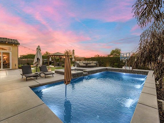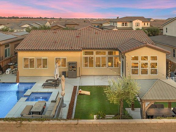 Experience refined living in Riverstone's prestigious Lafayette community. This 2020 Wathen-built single-story spans 2,954 sq. ft. on a 10,018 sq. ft. lot, offering 4 bedrooms, 3.5 baths, including a spacious owner's suite and private guest suite. The open-concept living area features a chef-inspired kitchen with a professional appliances, oversized island, and ample cabinet space. Enjoy multiple living spaces, including a guest living room, perfect for entertaining. Step outside to a sparkling pool, spa, and pergola ideal for California summers. Owned solar enhances efficiency (huge benefit on NEM 2), while a 3-car tandem garage adds convenience. Impeccable style, thoughtful design, and luxury upgrades throughout this home is a rare find in one of Madera's most desirable communities.
