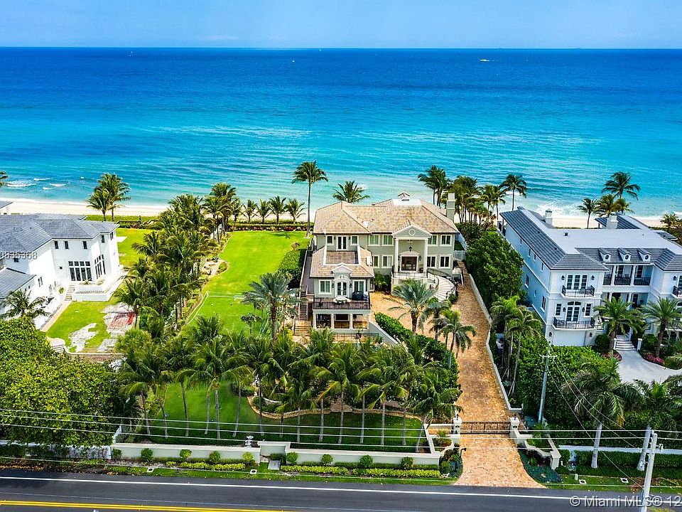 Spectacular mansion, move-in ready on Hillsboro Mile. Beach/Ocean front gated estate with 150 ft. docket/intracoastal (docket under construction). 6 bedrooms & 6 full bathroom, 3 half baths, 3 car garage. Enchanting home with spectacular designs. Heated pool with Jacuzzi and waterfall. Inviting Chef kitchen with stainless steel appliances. Immaculate turf lawn and lush landscaping. Wine room (16 wine coolers). Media room/home theater and game room. Loft on the 4th floor. A full house generator, 13 AC units.