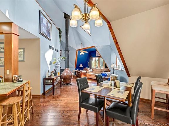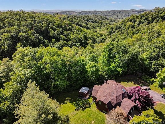 Here is your chance to own a totally unique home with features galore! This custom built dome home features approximately 4000 square feet with four bedroom and three full bathrooms. The stunning kitchen is the center piece of this amazing home with a custom marble tile island that has seating on two sides, custom warming drawer and large range top with pop up exhaust system. Large pantry and open shelving provide tons of kitchen storage space. The garage is flanked on both sides by workshop areas. The rising ceiling throughout the home is another unique feeling particularly in the open concept living room and dining room areas with a floor to ceiling stand alone fireplace. Every bathroom is updated and stylish with lots of added features. This home is a showpiece nestled on 3.8 acres just minutes from Floyds Knobs, downtown New Albany and Louisville. New roof was installed in 2018. Home is being sold AS-IS. Schedule your showing today!!