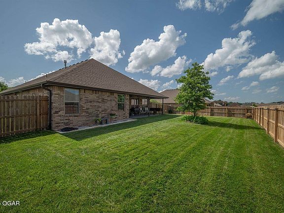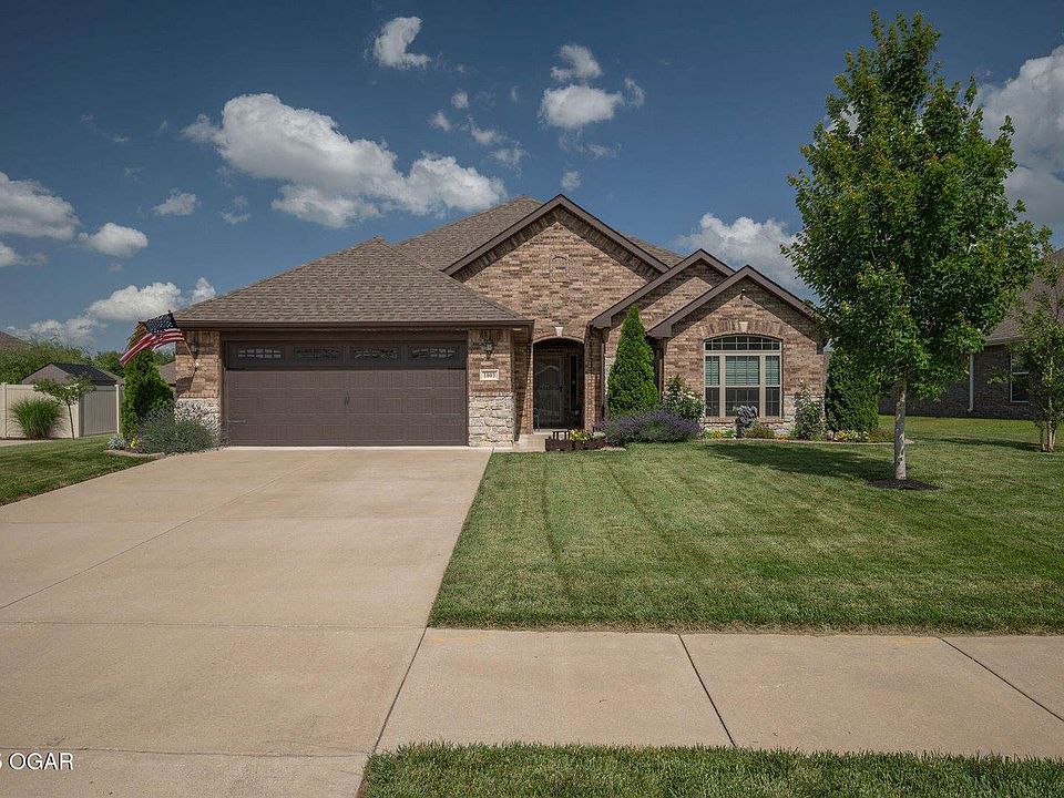 Welcome to this beautifully crafted 4-bedroom, 3-bath home offering 2,363 sq ft of refined living space. The striking stone and brick exterior is accented by extensive, meticulously maintained landscaping, creating amazing curb appeal. Step inside to find hand-scraped hardwood floors, soaring ceilings, a cozy fireplace, and an abundance of natural light pouring in through oversized windows. The open-concept kitchen is a chef's dream, featuring granite countertops, a large island with bar seating, and ample cabinet space. The spacious layout flows seamlessly into the living and dining areas—perfect for entertaining or everyday comfort. Enjoy the outdoors in the privacy-fenced backyard with a covered patio ideal for relaxing or hosting guests. The massive primary suite is a true retreat, complete with a spa-like bathroom and an oversized walk-in closet. For peace of mind, a 6-person storm shelter is located in the garage. Style, space, and safety come together in this thoughtfully designed home—don't miss your chance to make it yours!