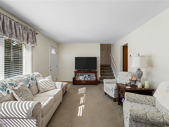 Move in ready 3 bedroom home in North Canton school district, featuring kitchen with granite counter tops, updated appliances and eat at bar, dinette with glass slider to backyard patio, nice backyard, updated bathroom, living room with lots of natural light and decorative wood accent wall, spacious bedrooms with blinds, rec. room in lower level, attached garage, and driveway with additional parking. New HVAC 2024, Dishwasher brand new, Oven - 2 years old, Refrigerator - 3 years old, Roof 2016. This home has been so well cared for!
