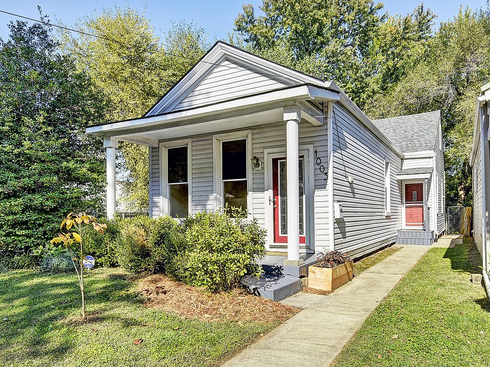 Privacy, privacy, privacy! This charming camelback is situated on a beautiful, tree canopied secluded lot- that for a moment you forget where you are-on the cusp of both Schnitzelberg and Audubon neighborhoods, talk about a great location! This 3 bedroom, two full bathroom home offers an abundance of space with its sprawling layout and an attached single car garage. The covered front porch greets you into your large, sun-filled living room with newly finished hardwood floors by Highland Hardwood. This room could easily be reimagined as an office space or guest room as well. Hello first floor owner's suite! The primary bedroom and primary bathroom are a rare find for the area. The center of the home is where you will find the family room, flanked by french doors that open to the large eat-in kitchen with an additional entryway to the home from the side porch. The kitchen was updated in 2018 with new cabinets, countertops, light fixtures, along with most appliances- and has great views of your backyard oasis. A hallway leads you to your second full bathroom, and a second bedroom- adjacent to the home's laundry room, making the ease of living that much more convenient. Upstairs houses the third bedroom (nonconforming space) that offers the option for even a play room/bonus room. Stepping outside, where you are nestled among the trees-the backyard features a covered porch, stone patio, and plenty of greenspace-all perfect for entertaining or relaxing on crisp fall nights ahead. The proximity to locally owned restaurants and businesses are yet another reason to make this home a true catch! Schedule your private showing today.