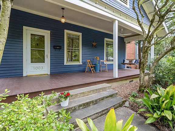 Inviting 1917 bungalow in the heart of Durham's famed Trinity Park. Heart pine & reclaimed hardwood flooring + 10 ft ceilings highlight the main floor. Private, fenced back yard with established garden featuring a myriad of perennials that provide seasonal beauty, especially in May. Large front porch with swing, offering a connection to one of the most beautiful blocks in Durham. Attic loft bedroom has 300+ sq ft of “other above grade space” not included in living area sq footage. Classic touches combined with the right updates: back third of the house was renovated by Cadence Const. in 2012, including the kitchen, laundry room, master bathroom, stairs to the loft, and new electrical service and breaker panel replacing old fuse box. Gas water heater in 2013, Carrier gas furnace and central AC in Dec 2015. Sewer line to Monmouth replaced in 2010. New dishwasher in March 2023. This beautiful home features mostly original windows--several reconditioned in 2020--and glass-paned French doors between the dining room and the living room. Large windows in the kitchen create a sun-filled connection to the verdant back yard.
