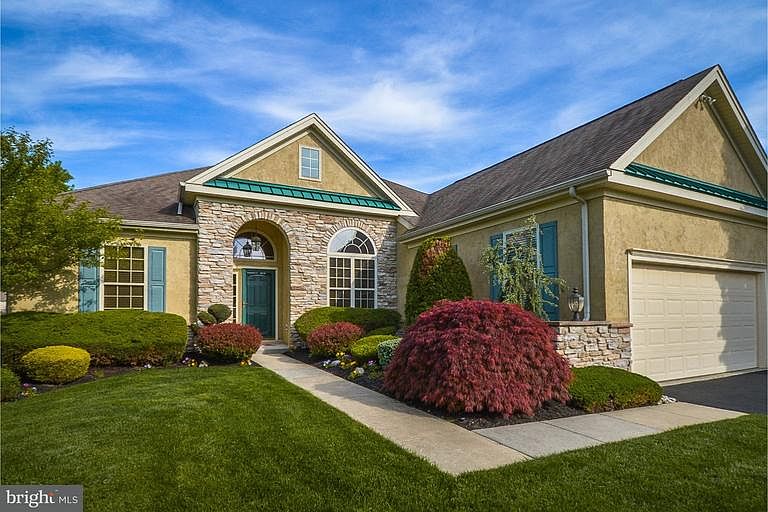 One of Heritage Creek's premier homes this stunning Washington model will wow you. Custom features are throughout this spacious 2 bedroom 2 bath open floor plan home. Lovely foyer entrance separates the formal living room and formal dining room where you will find custom window coverings and lighting. The hallway from the foyer with its architectural features leads to the gourmet kitchen with high end GE Profile appliances, granite, 42 inch cherry cabinets, electric cooktop, large pantry, easy care tile floor, under and over counter lighting and custom lighting in the breakfast area. Custom windows treatments throughout including the Shoji screens on the sliding glass doors in the Family room that leads to the oversized deck. Alongside the kitchen is the study/den/office with French doors and a transom for added light. This makes a special workspace for a home office or could be third bedroom. The spacious master suite has two walk-in closets, separate sinks in the master bath that are sized for him and her, a soaking tub and stall shower. The second bedroom is a very generous size for guests. The decorated hall bath is complete with a chandelier! The mechanical/laundry/mud room also has a new hot water heater, a stackable Maytag washer and dryer with a laundry tub and is where the carrier heater is located. The two car garage is off the laundry room. Don't miss this very lovely Single home in the Greatest 55+ community with a large 17,000 sq. ft. clubhouse with indoor pool, two physical fitness room, large Ballroom w/kitchen, inviting lobby with stone fireplace, library/computer room and two larger club rooms for two full size pool tables and card rooms etc. The exterior has a large covered patio, an outdoor pool, two Har-tru Clay tennis courts and two bocce courts that make this community stand out with all of the activities that you can enjoy in beautiful Bucks County.