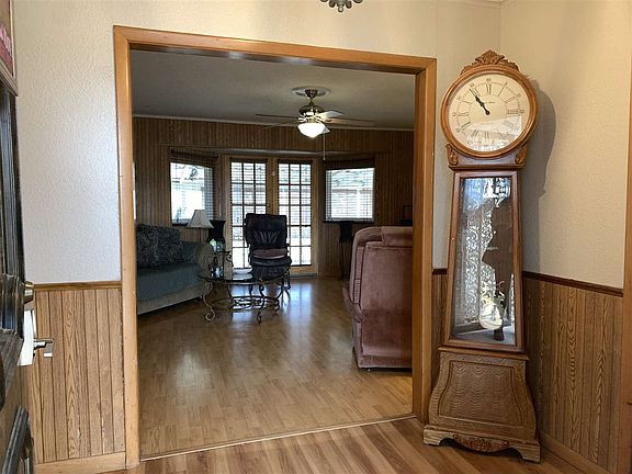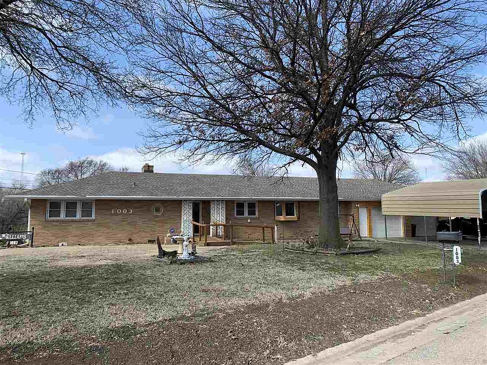 This 3 bedroom, 2 bath home sits on a large corner, 1/2 acre lot with a creek and woods behind for a country wsetting in town. It has so much to offer: newer laminate wood look flooring, beautiful stone fireplace, storm shelter, extra shop 25x20, 2 car attached garage, 24x20 carport, chain link fenced yard, generator (2009), roof (2018) hail resistance, HVAC (2009) with filter system and humidifier, covered patio, large living and dining room. Call today to make this your next home.