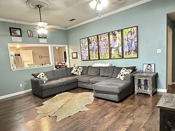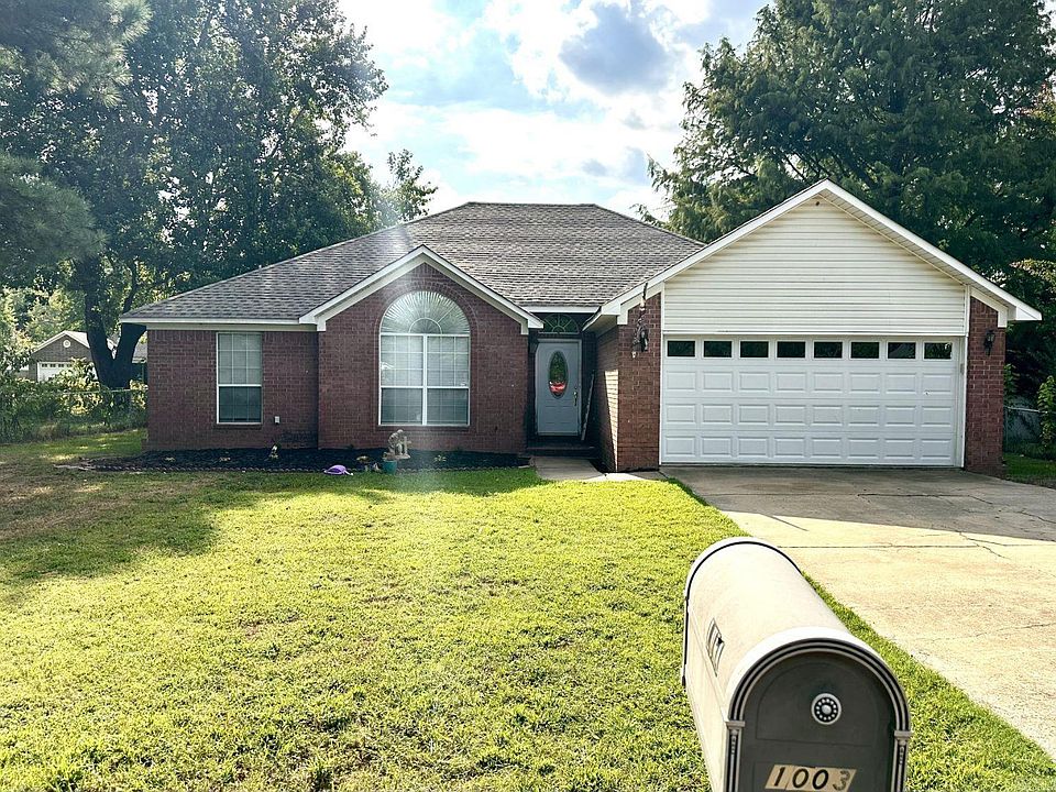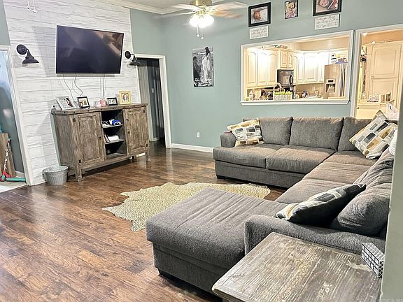 Cute brick home large living room, laminate flooring, master separate from the other bedroom, building in the back yard