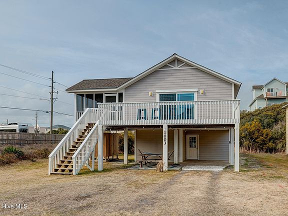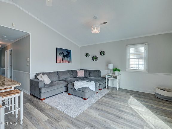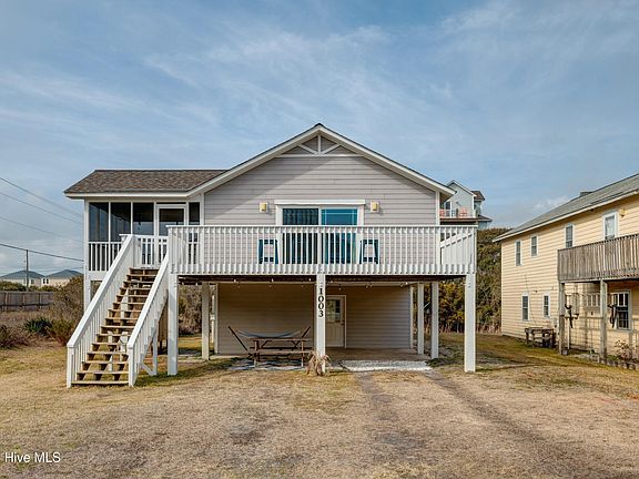 Charming and beautifully updated, this 4-bedroom beach house in desirable Surf City is just approximately a 2.5-minute walk, roll, or stroll to the beach, offering the perfect blend of comfort and coastal living. Each bedroom features a walk-in closet, and the home boasts LVT flooring throughout for a seamless, low-maintenance look. The screened porch and large front deck provide ideal spaces to enjoy ocean breezes, while the outdoor shower, added in 2021, offers a convenient way to rinse off after a day at the beach. Plenty of parking ensures space for friends and family to visit. Recent updates include a stove, dishwasher, and refrigerator in April 2024, a custom slider door in June 2024, new windows in December 2024, new pilings in December 2024, freshly epoxied showers in December 2024, and fresh interior paint in January 2025. The home also features a good-sized storage area with an unpermitted flex space, providing additional space for visitors or other needs. Conveniently located near shopping, dining, and the shoreline, this partially furnished home is move-in ready. Don't miss this incredible opportunity! *Please see List of Exclusions for items that do not convey*