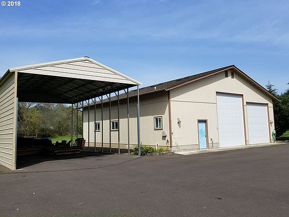 OUTSKIRTS OF TOWN! Quality 3 BR-2BA home with 44X46 finish shop/w full bathroom, drive through doors, separate wood working shop AND BONUS 22X35 RV port. Blacktop driveway. One acre lot that borders Myrtle Creek. Home has Myrtle wood floors, all appliances staying, heat pump and both city water & sewer. This is a one owner home that has been well taken care of, immaculate inside and out. Exclusive mountain views.