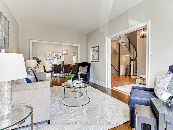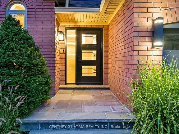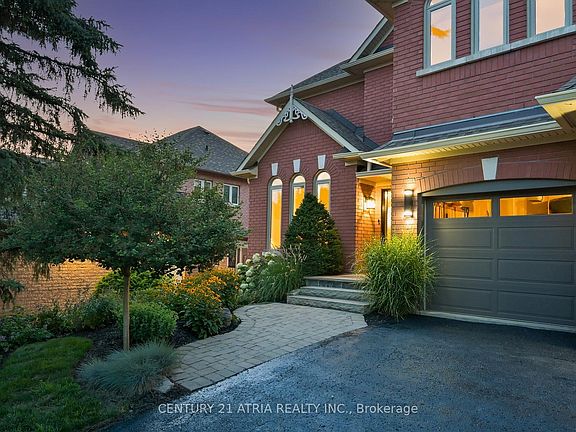 Set on one of Stonehavens largest and most prestigious lots, this estate offers 5,000+sf of finished luxury with a backyard resort and your own private woodland trail! Located on the rarely offered and exclusive north side of Northern Prospect, this property combines privacy, scale, and meticulous upgrades that place it in a class of its own. The exceptional backyard offers a large pool surrounded by interlock and armour stone (09), new robotic cleaner and cover (24), large cabana wired for sound, upgraded exterior lighting, and 220v electrical ready for a hot tub. A brand new 756sf deck (25) off the kitchen overlooks the pool and trees, creating seamless indoor-outdoor living. The manicured woodland trail winds through mature trees with quiet seating areas, there is even a preserved section of the original Stickwood Walker Farm fence along the path. Inside, soaring 9' and 12' ceilings set a dramatic tone. The spacious sunken family room boasts a large vaulted ceiling and gas fireplace, while the open concept kitchen features granite counters, custom cabinetry, Dacor appliances, built-in oven, gas stove and walkout to the new deck. The primary suite includes a sitting area, large walk-in closet, and complete spa renovation (17) with wet room, oversized walk-in shower, his/her vanities, and luxury finishes. All bathrooms in the home have been renovated with the same attention to quality. The professionally finished basement (19) delivers a custom wet bar with stone backsplash, complemented by a gas fireplace with stone accent wall, integrated built-ins, and two oversized storage rooms ideal for a gym, workshop, or wine cellar. Updates include: full house surge protection, professional paint (25), smooth ceilings (25), new staircase (25), new pot lights & lighting in/out (25), triple-glazed windows (13-18), furnace & A/C (21), re-bedded owned soft water tank (23), roof w/ 30yr warranty (10), new eaves (20), new front door system and inground sprinklers.