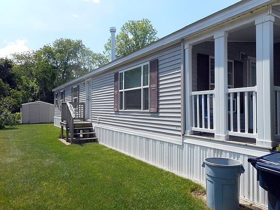2005 Skyline double wide! This park allows children and small pets. Open concept living room w gas fireplace, dining area opens to fully applianced kitchen w large island. Lots of cabinets w nice pantry closet. 3rd bedroom has no closet. Good sized master w two closets wa private bath w large 5' shower w seats. 2nd bedroom also has two closets and slider overlooks large deep yard w shed. Monthly fee covers taxes, water, septic system, trash and road maintenance. Yard, house and driveway is responsibility of owner. with an acceptable offer owner will prepay 6 months of park rent or have central air installed. All appliances are gifted and not warranteed. special financing is required, regular bank financing not applicable.