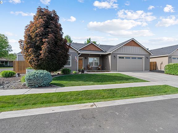 Newer build in Hermiston with all the bells and whistles! This 4 bed, 2 bath house is on the corner lot of the cul-de sac and starts off with a custom built hardwood front door. Inside has luxury vinyl plank flooring throughout, the kitchen features granite countertops, tile backsplash, an island, stainless appliances, a gas range that can be converted to electric, and a custom farm door that leads you into the family room. Need some extra space? The bonus room has double doors! Keep cozy with the gas fireplace and enjoy the double sink, walk in closets and the custom extended walk in shower in the primary bathroom. Once outside, relax in the hot tub, or under the pergola. This fenced backyard includes an underground sprinkler system and drip irrigation for the fenced off garden with raised flower beds. Have projects? The 2 car garage is heated, has shelving and your pooch can go in and out from the man door to the yard. Reach out today to view this can't miss property!