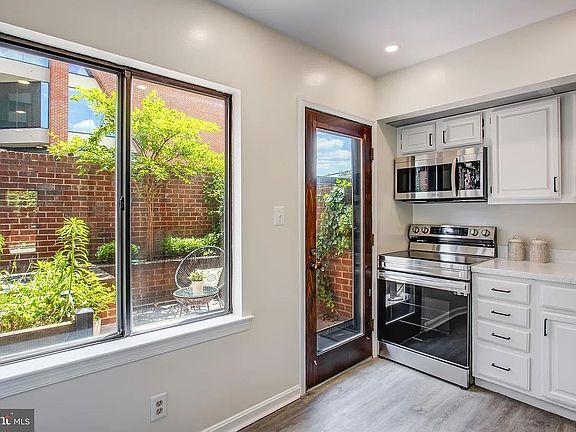 This lovely townhouse-style condo at the Papermill offers garage parking and is located in a quiet, gated neighborhood between the historic C&O Canal and Georgetown's beautiful waterfront park. The home has been updated with new lighting, fresh paint, new floors, and modern finishes. The renovated kitchen features brand-new stainless steel appliances and opens to a private patio, perfect for outdoor gatherings. The bright living room has hardwood floors, an exposed brick wall, and a cozy wood-burning fireplace. Upstairs, you'll find two bedrooms with plenty of storage and a renovated bathroom. The large attic provides extra storage or potential for more living space. With a reserved parking spot, in-unit washer/dryer, and a great location near shops and restaurants, this pet-friendly community is a real gem.