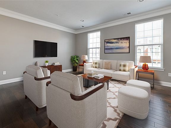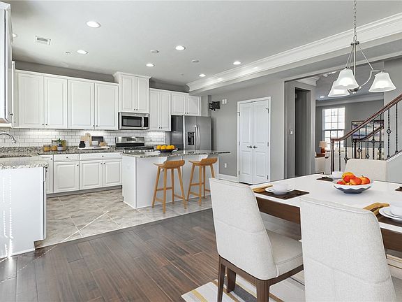Immaculate townhome loaded with upgrades! Wide plank hardwood flooring throughout the home including the staircases and all bedrooms. 4ft extension, neutral paint colors, upgraded lighting, custom crown molding and trimwork, ceramic tile flooring in bathrooms. The gourmet kitchen features white cabinetry, gas stove, stainless steel appliances, granite countertops, subway tile backsplash, pantry, and opens to the deck. Ample natural light. The luxurious primary bedroom has a tray ceiling, walk-in closet and en-suite bathroom. Upgraded master bath w double bowl vanity, soaking tub, shower & ceramic tile flooring. The laundry is conveniently located on the 2nd floor along with two additional bedrooms. The walkout basement can be finished or used for a gym or storage space. This townhome boasts a RARE private, large and level backyard with the most amazing views! Community amenities include clubhouse with gym, theater, basketball courts, party rooms, car wash, 2 pools and playground.