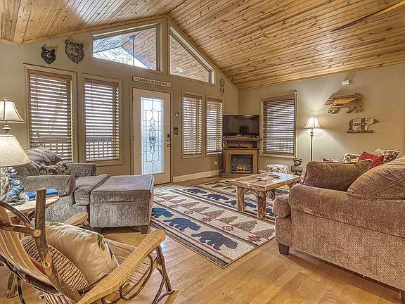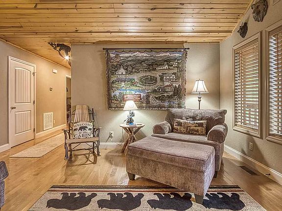 Gorgeous newer home that has been lightly rented and used as a second home for the owners-- so not used up or worn down! Rustic log look, higher end furnishings, tile in kitchen and baths, tongue and groove ceilings, ample decks for sitting in the mountain air. Full size washer and dryer in laundry room. This could be a very nice residence as well as a great rental! Location is great-- in a quiet area but just minutes from Sevierville and easy access to back roads getting to Dollywood, the National Park and Gatlinburg. Awesome neighbors are a few curious brown goats that renters love.