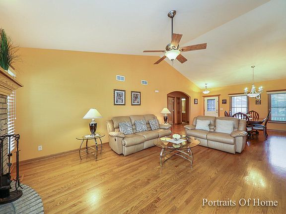 Immaculate Ranch Home in Hampshire Meadows - The Beautiful Brick Elevation, Covered Front Porch Welcomes You Into This 3 Bedroom, 2 Bathroom Home Featuring Vaulted Ceilings As You Enter, Solid Oak Hardwood Flooring, Six Panel Doors, And Trim/Moldings Throughout, Open Layout And Filled With Natural Light. A Spacious Kitchen With Granite Countertops, Custom 42" Oak Cabinets With Crown Molding, Island And Pantry Closet. Sliding Doors From Kitchen Lead To Covered Patio Overlooking An Oversized Yard And Extended Patio Along The Back Of The Home. The Master Bedroom Offers A Full Ensuite With Large Double Sink Vanity, Walk In Closet, Stand Up Shower, And Jacuzzi Tub. Full Unfinished Basement With Bathroom Rough-In. One Owner, Quality Construction, and Well Maintained - A Perfect Home To Move Into And Enjoy For Years To Come!
