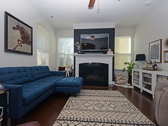 This adorable 3 bedroom 2.5 bath Charleston-styled home w/ double rocking chair front covered porches is a must see. Open floor plan features hardwoods throughout main for easy entertaining and cleaning. Family room with gas log fireplace. Gourmet kitchen w /42" cabinets, gas stove, up graded lighting, granite counters, tile backsplash, stainless appliances, & large granite island bar. Generous master bedroom w/ access to balcony for nice relaxing evenings overlooking the pond with water feature. Spa like Master bath w/ dual vanity, garden tub, glass enclosed shower. Fenced back yard w/ patio & detached 2-car garage which has been converted into a "man cave" with tons of storage. Can be converted back very easily. HOA Fees cover lawn maintenance, common areas, walking trails. Community has Equestrian facilities and trails, pool, tennis courts and fitness facility.