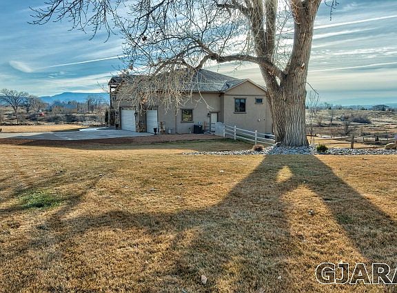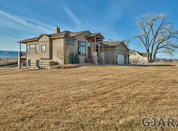 Beautiful executive home located north of Grand Junction on 2 acres! When you walk through the front door you will be amazed by the expansive valley views & the wonderful use of windows that provide a warm feel with all the natural light! With over 5500 SF, 6 bedrooms, 5 baths & oversize 3 car garage this home really does have it all. Open floor plan on the main with split bedrooms allows for incredible entertaining throughout the living area & kitchen & out onto the over 60 ft long covered back deck. This is a chef's kitchen with Thermodore & Jenn Air appliances, high end granite counter tops & tons of storage! You can let the daily stress melt away in your master retreat, complete with 5 piece master bath, walk-in closet, fireplace & hardwood floors. Downstairs you will find secondary family room with wet bar, theater & potential guest suite! Don't miss out on this one.