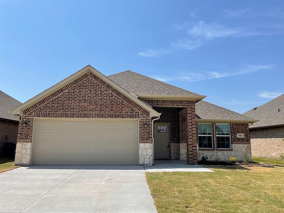 A one year old immaculate and adorable single story house in the sought after Stonewood neighborhood. Spacious 3 bedrooms, 2 full baths and 2 car garage open floor plan with large 10 feet ceiling living spaces! Gorgeous Kitchen features a large island, under cabinet lighting, white cabinets, walk in pantry and granite countertops! Full Wood Vinyl flooring throughout all the high traffic areas. Separate frameless shower and tub, dual sinks in master bedroom. Split bedroom floor plan, full size utility room. Ceiling fan in each room. Covered back patio, sprinklers, landscaping, gutters and many other luxury features. This community is just off Hwy 380 & Interstate 30, a few minutes from L3 Harris in Greenville. A very desirable proximity to schools, shopping. Making this a wonderful place for your family to call home! Move-in ready Sep.1st. Renters pay for all utilities and yard maintenance. 20 months plus lease required. Rental insurances required. No smoking. No waterbeds. No sublease. Pets are considered with deposits and restrictions on a case by case basis. First full month's rent, security deposit and pet fee are due at signing. No criminal & No eviction histories, a credit score of 630+, and the income must be greater than 3 times the monthly rent. Move-in ready Sep.1st.
