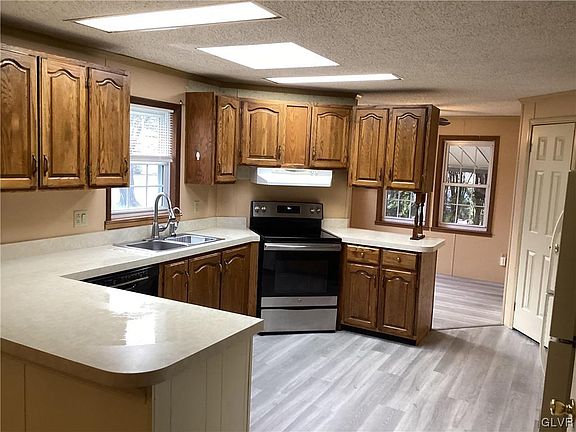 **MULTIPLE OFFERS RECEIVED highest and best due by THURSDAY 4/4 @ 5:00pm** Escape to serene country living in this charming 3-bed, 2-bath mobile home nestled in the tranquil setting of Green Acres community. Enjoy 1600 sq feet of a spacious, open floor plan flooded with natural light, courtesy of skylights that invite the outdoors in. Entertain effortlessly in the large kitchen, that includes an ample amount of cabinet space and countertops. The kitchen is open to an oversized living area with a rustic accent wall including plenty of storage leading to 2 bedrooms, full bath as well as a spacious primary suite. Through the primary french doors, retreat to the expansive bathroom boasting a luxurious soaker tub and a double vanity. Property has MANY updates including a new heat pump providing both heat and AC. Outdoors offers a private back yard including a covered porch, covered carport, large driveway and shed. Great amenities include a pool, tennis & basketball courts, playground and clubhouse all included with the monthly lot rent as well as the water, sewer, trash/recyclables and snow removal of all the main roads. Close proximity to shopping, restaurants, entertainment and Major Routes! Schedule your showing today! All buyers must apply to Green Acres. **Seller is currently waiting on the title from penndot**
