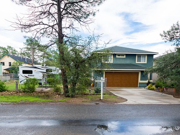 Charming home nestled in the pines of Prescott all paved and easy access to downtown, hiking and biking! Kitchen offers large pantry and granite counters open to living area. Lots of storage, powder room off the kitchen as you come in from garage. All bedrooms are upstairs including upstairs laundry closet and loft. Master suite has a huge walk in closet and upper deck. The floor plan makes great use of space and would be perfect for full or part time living. Tile floors through out. The additional lot next door is included in the sale and allows for RV parking, space to build another garage/workshop or yard space to roam. Additional yard behind the home as well. Mtn Club offers a rustic club house and play area! A unique opportunity on flat land in Prescott!