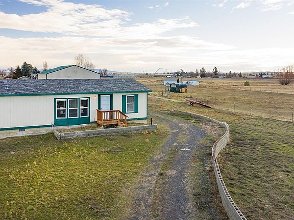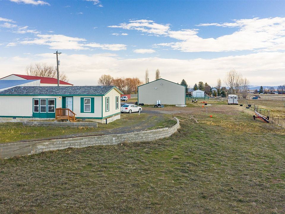 Affordable horse set-up! 4.5 flat useable acres just off Hwy 2 Airway heights. 2 bd 2 bath 1994 double wide manufactured home with a bonus/office room. Brand new 30 year roof. New large back deck and good solid foundation. This property comes with a large 40x30 insulated heated shop, plumbed for bath room and water. A 12 panel round pen, loafing shelters and pasture w/ frost free spigot to bring water right to your livestock. Close to the Air Force base, schools, airport, and minutes from downtown Spokane.