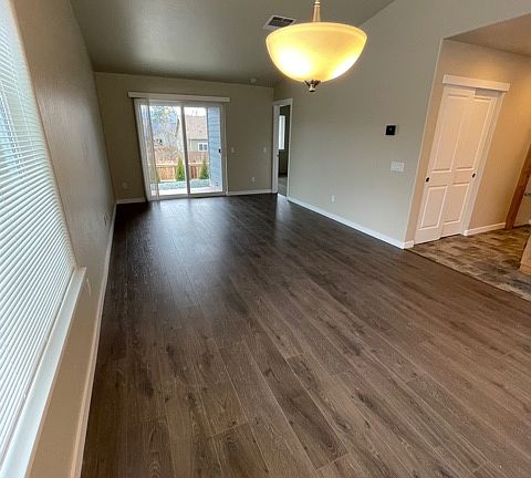 Evergreen Manor - 55+ Community 2 bedroom, 2 bathroom duplex with garage & yard. - Do not miss out on this beautiful apartment home. - The unit features a spacious floor plan and open concept. - Beautiful custom cabinets - Granite countertops - Stove, dishwasher & range hood included - Primary bedroom has a walk-in closet - Primary bathroom has shower stall only no tub - Hall bathroom has a full shower/tub - Plank flooring everywhere except carpet in two bedrooms - Private spacious back yard - Covered patio - Single car garage with garage door opener - Washer/dryer hookups in garage - Single story - No smoking - Pets (upon approval - Under 30 pounds) - additional deposit applies - Beautiful river rock landscaping front and back yard - The application fee is $30.00 per adult. Each adult must apply on a separate application. *Must make 3 times rental amount in verifiable monthly income. Tenant pays all utilities including, water & trash. UNIT AMENITIES Air conditioner, Carpet, Dishwasher, Disposal, Fenced yard, Garage parking, Hardwood floors, Heat, Kitchen island, Laundry hookup, Linen closet, Mirrors, Pantry, Pet friendly, Private patio, Stove and oven, Vaulted ceiling, Vinyl floors, Walk-in closets, Window coverings Property pictures are staged only - unit is NOT furnished.