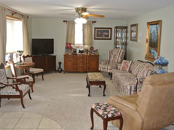 South Facing Ranch Home With 2 Car Attached Garage W/Heat, Extra Garage, Patio And Sun Room. Open And Airy Floor Plan Featuring A Large Living Room, Nice Kitchen With Dining Area And Pantry, Main Floor Laundry, 2 Spacious Bedrooms And Bath. The Lower Level Has A Family Room, Bath W/Shower, Possible Extra Bedroom And Tremendous Storage Space. Located On The Edge Of Town.