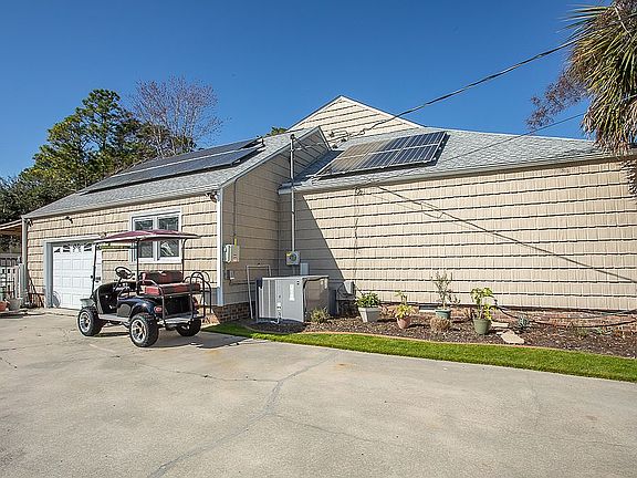 Located in the highly sought after area of Belle Park in NMB. This unique home sits on a beautifully landscaped property surrounded by an abundance of tropical plants and foliage. Upon entering the home you are immediately greeted by an open floor plan showcasing a large gourmet kitchen/dining room flowing into a spacious living room all overlooked by a vaulted ceiling with an elevated loft offering plenty of natural light. The newly redesigned gourmet kitchen offers wall to wall hickory wood cabinets featuring soft closed doors & drawers, 20 feet of quartz counter top with tile back splash. Includes stainless steel appliances, LED under cabinet lightning, professional grade 6 burner stove with a ducted hood system. A 7500 continuous run Generator with Whole House Sub Panel . The first floor boasts 2 oversize bedrooms with a fully tiled bathroom showcasing a walk in shower with his/her pedestal sinks. The second level offers a 3rd over sized bedroom, extra large bonus room for a 4th bedroom conversion and a full bath including tub. The exterior property offers a fully covered front porch as well as an over sized covered back deck ideal for entertaining or just relaxing listening to the koi pond waterfall. The property offers many extras including solar panels, 4 zone irrigation system, home alarm system, crawl space vapor barrier with dehumidifier as well as a fully fenced backyard. NO HOA AND LOW TAXES !!! Residents enjoy many city benefits such as free beach parking, garbage/trash pickup and mosquito spraying. Close proximity to library, medical facilities, police/fire departments, shopping and a golf cart ride to the beach.