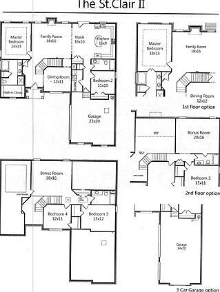 The St. Clair II features 4 bdrms, with Master bdrm and another bdrm on main level, 3 full baths, gourmet kitchen with open concept and plenty of cabinetry. Large bonus and 3 car garage!