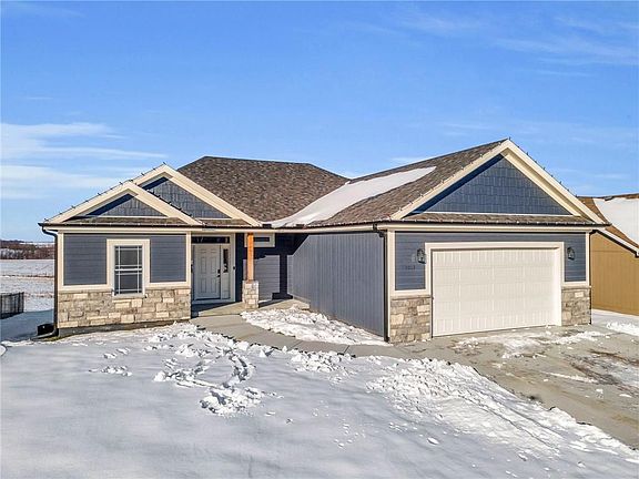 Stunning 2023 Ranch Home with Modern Comforts and Style. Step into this newly constructed, 2023 ranch-style home, offering 1,500 square feet of beautifully designed living space on the main level. The open floor plan creates a seamless flow between the living room, kitchen, and dining area, making it perfect for entertaining and everyday living. The split-bedroom design ensures privacy, with a luxurious master suite tucked away featuring a spacious walk-in closet, double sinks, and a walk-in shower. Two additional bedrooms and a second full bath complete the main level, along with the convenience of a main-level laundry room. Off the dining area, step out onto the covered porch with composite decking—our private retreat to enjoy breathtaking western sunsets. The finished lower level boasts a true fourth bedroom, a spa-like bathroom with a soaking tub, and an abundance of unfinished space, ready for your personal touch or future expansion. This thoughtfully designed home combines modern features with timeless charm, making it the perfect place to create lasting memories. Don’t miss out on this gem—schedule your tour today!!