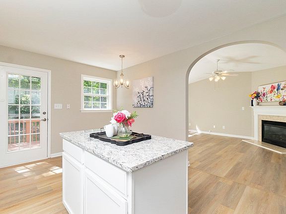 Adorable Ranch style home with 3 beds /2 baths on cul-de-sac. New flooring throughout, new paint throughout, new light fixtures, updated kitchen w/granite countertops. Foyer opens to large front sitting area which opens to bright and spacious dining room. Kitchen features newly professionally painted cabinets w, island, pantry and breakfast nook. Large owner’s suite offers double vanity bath w/separate soaking tub and large walk-in closet. Well maintained, manicured lawn with wooded view in back.