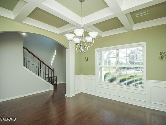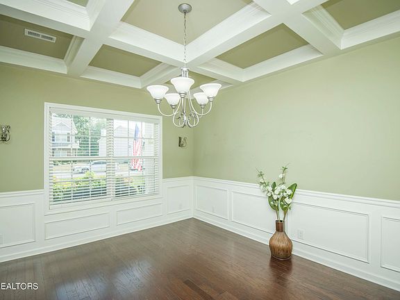 Welcome to your dream home in Lenoir City! This stunning 4-bedroom, 2.5-bathroom residence is the epitome of modern comfort and style. Step inside to discover a spacious dining room adorned with beautiful coffered ceilings and gleaming hardwood floors, setting the tone for elegance throughout.