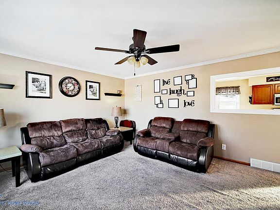 Charming as can be this 3 bedroom, 2 bathroom, 1500+sq.ft. Ranch located in the heart of Griffith is just blocks from Beiriger Elementary School & Griffith High School. Main floor boasts spacious Eat-In kitchen with dark cabinetry, S/S appliances, ceramic tile floors, & pass thru opening up to the Living Room (HW Floors located underneath carpet). 3 bedrooms feature Hardwood Floors, Ceiling Fans, & Ample closet space. Beautifully updated FULL bathroom includes pocket door that leads to Master Bedroom. Basement includes appx. 540 sq.ft. of finished space which makes it the perfect recreational space + 3/4 bathroom, Laundry & Utility room. Large fenced backyard with 2.5 car detached garage. **MORE PHOTOS WILL BE AVAILABLE WED. JAN 22**