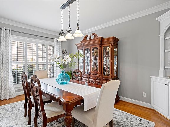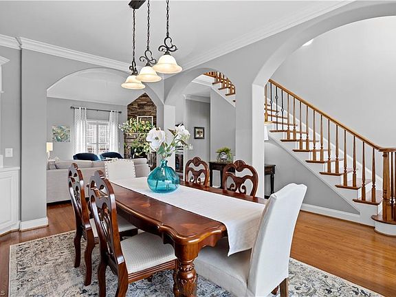 Check this out! Pristine, spacious transitional home with stunning, heated swimming pool! Main level primary suite with hardwood floors and upgraded closet system also boasts a sunroom/office overlooking the pool. Open concept, inviting kitchen/ great room. 2nd floor offers 3 generous bedrooms and a hall bath. Expansive finished basement with easy pool access is the perfect escape! 2 large walk in storage areas. Exceptional outdoor space including large deck with custom awning and stamped concrete patio. Quiet, private cul de sac location with easy walk to the clubhouse/ dining room and pool! Irrigation system, fully fenced yard, plantation shutters. Move in ready, available for a quick closing!