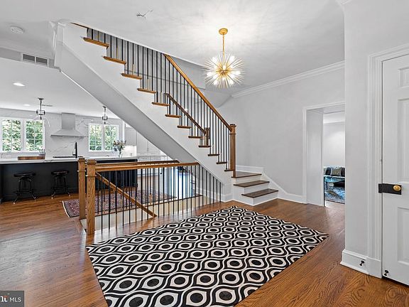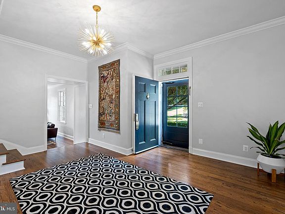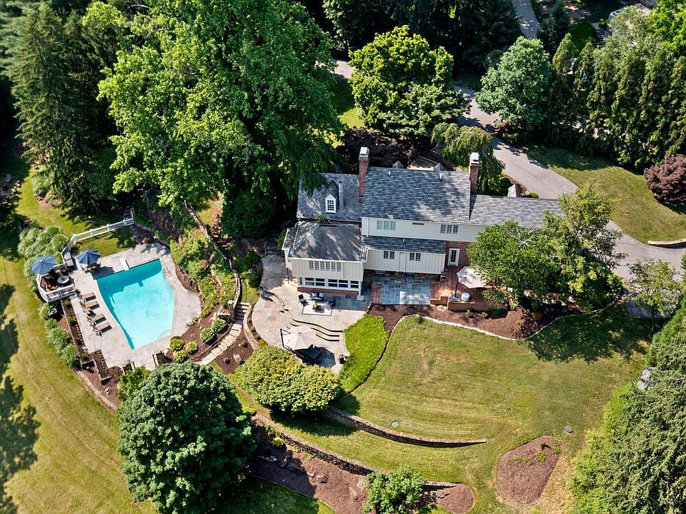 Beautifully updated and expanded 5 Bedroom, 4/1 Bath luxury home on one of Ruxton's most picturesque lanes. Large Foyer with modern open staircase flows to gourmet Kitchen with Shaker cabinets, quartz counters, stainless steel appliances and breakfast area. Adjoining vaulted Family Room with marble gas fireplace and 2 sets of French doors to formal Living Room with fireplace. Formal Dining Room. Spacious Laundry/Mudroom fitted with Shaker cabinets, granite counter and built-in mudroom cabinetry. Luxe Primary Suite with custom fitted walk-in closets and spa Bath plus 3 additional large Bedrooms and 2 updated Baths on the 2nd Level. Finished walk-out Lower Level with Rec Room with fireplace, Game Room, Bedroom 5/Office, full Bath, wet bar and glass enclosed Porch. Brick Patio, tiered bluestone Patios, in-ground Pool with Deck and bluestone Patios all on 3.11 landscaped acres including terraced gardens and stone garden walls. Country ambience close to the city!