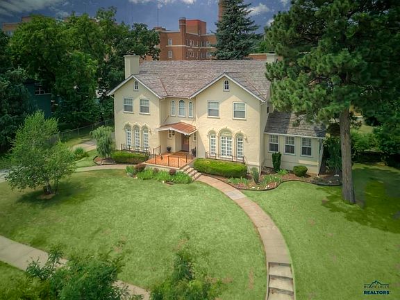This is a gorgeous blend between Spanish Colonial and the essence of Italian architecture in one extraordinary home located in the Historical District of Rapid City. The integration of the two home styles and the classic top notch updates gives this property a one of a kind feel as you make your way from room to room. Every detail of this house is unique and very well thought out. Graceful arches with a harmonious flow between rooms creates a sense of timelessness and architectural continuity. Four bedrooms, three bathrooms, two half bathrooms, a two car detached garage with approximately 5,262 sq. ft. gives you all the room you need. Remodeled kitchen, a butlers pantry, lovely and spacious mud room, breakfast nook, formal dining room, formal living room, walkout basement are just some of the unique characteristics that makes this property stand apart. The home sits on 5 city lots and happens to be a beautifully manicured and landscaped corner lot.