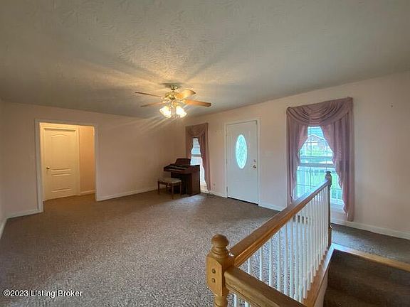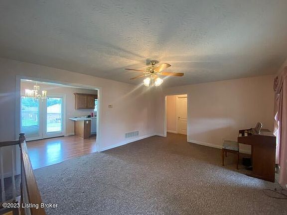 Neat & Tidy three bedroom two bath brick ranch with full finished walk up basement & 2 car attached garage situated on .28 acre located in Whispering Oaks Subdivision. Home offers plenty of space with large rooms & and plenty of storage. Vinyl plank, carpeting & vinyl throughout. Spacious Living Room, Eat in Kitchen with appliances to remain & convenient breakfast bar. Separate Laundry Room & Pantry. Large carpeted primary suite with walk in closet. Two additional spacious bedrooms & full bath complete the main level of the home. Venture to the basement to enjoy three rooms finished currently used as Den, Office & recreational room. Outdoor features include a covered front porch& rear patio for entertaining & nicely landscaped yard. Located near all the amenities of Bardstown.