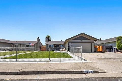 Charming 3 bedrooms /1.5 bathroom, 2 car garage. Quiet neighborhood with easy access to Highway 12 & 80, shopping, mall, Travis AFB, and more. Central AC/Heat, hardwood floors, spacious kitchen with stainless steel appliances: refrigerator (new), stove, dishwasher, microwave. Ceiling fans, ring camera, fenced in front yard, covered patio and 3 storage sheds in backyard. Washer/Dry Hookups in the garage. Property has Solar paneling (19 panels) that covers over 90%+ of during summer months/80%+ during winter. Tenant in charge of own utilities: water, garbage, internet, electricity. No Smoking. Landscaping will be done prior to move in and then the tenant is to maintain. Looking for a year lease. Additional non-refundable deposit would be required for a pet. Small pets (under 20 lbs only). Military encouraged to apply Available now . . . First month's rent and deposit due at signing. Small pet ok (under 20 lbs), additional deposit for pets. Renter is responsible for utilities: electricity, gas, water, garbage, cable. No smoking allowed. Must apply to view property.