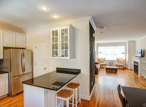 Exceptional unit in newer Trumbull complex. Well maintained w/many extra features. Granite in kitchen & baths, hardwood floors, gas fireplace w/builtins in living room, crown molding in most rooms, high end light fixtures, & plenty of storage. Upgraded kitchen cabinets. Living room & dining room are bright & spacious. Perfect for entertaining. Finished walkout lower level can be office or den. Two bedrooms up, each w/full bath. Master bedroom with full bath, mahogany ceiling fan, and 2 closets with custom mahogany shelving. Unit has 2.5 baths. Zoned Gas heat. Zoned Central air. Kohler bath fixtures. One car attached garage. Walk to restaurants, bike trail, tennis facility, & gym. Greater commuter location. Please see addendum for upgrades.