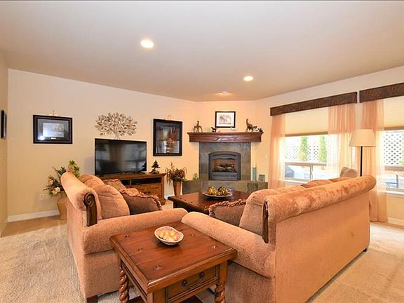 Located in Eagle Crest's 55+ community The Falls, you will find this spacious single level home with shop! Enjoy cooking in the open kitchen complete with island, granite tile counters, large pantry and plenty of cabinet space. There are 2 guest bedrooms and full bath on one wing of the house, with the master suite on the other wing complete with a large walk-in closet, double vanity, tile shower and soaking tub. There is a 2 car garage with storage, plus a 19 x 9.5 ft +/- heated shop off of the garage perfect for crafts. Relax on the paver patio in the backyard with covered BBQ area and much more. Stay comfortable year-round with the electric heat pump, AC and the propane fireplace in the living room. Eagle Crest offers 3, 18-hole golf courses, putting course, 3 sports courts and miles of trails plus swimming, tennis and pickleball. Owners in The Falls also have a private clubhouse with kitchen, library, pool table, game room and exercise facility. Live the good life in Eagle Crest