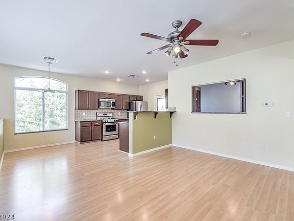 Check out this premier Upstairs Condo unit with a garage! The home has been well cared for with upgrades galore! Fresh paint! The layout is a popular 2 bedroom PLUS den layout. The condo sits within the sought after Red Bluffs community in the heart of Summerlin! The appliances include the stainless steel kitchen as well as the laundry system! The woodlook floors flow throughout the home which keep dust and allergies lower. Schedule your tour today!