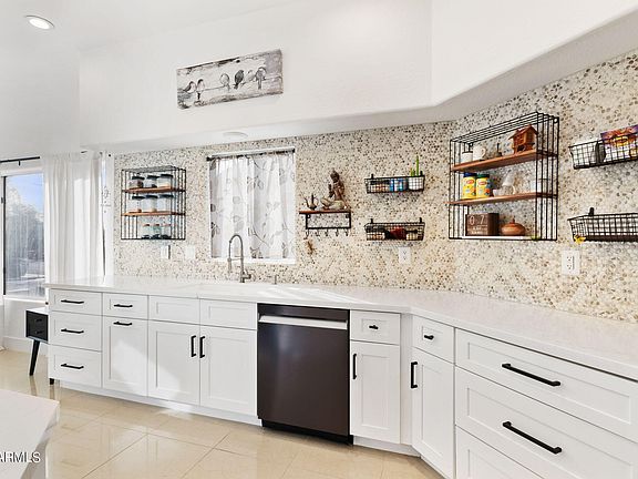 VIEWS of the MCDOWELL MOUNTAINS from your back patio! Don't miss this fully renovated 3 bed 2 bath home in Mountainview Ranch. The property has an open airy feel with vaulted ceilings throughout & unobstructed views of the McDowell Mountains. The kitchen has been updated to include white shaker cabinets, quartz countertops, black hardware, large basin sink & custom tiled backsplash with hanging shelving, black stainless-steel appliances & a eat in breakfast nook with plenty of natural light. The family room is open to the formal dining area w/ a dual wood burning fireplace, sliding glass doors & wall of windows that overlook the back patio with breathtaking views! The primary suite is oversized including sliding glass doors to the back patio. The primary bath includes an upgraded cust tiled walk-in shower with glass enclosure, separate tub, private toilet room & spacious walk-in closet with a custom chandelier. The back patio comes complete with pavers and the capability to design your dream oasis to enjoy the McDowell Mountain backdrop without any neighbors behind you. Seller has put in 50K of upgrades! The location is ideal you are just around the corner from Aztec Park, Soccer Field, tennis courts and just minutes from the 101, shopping centers, & restaurants. You will not want to miss this gorgeous home!