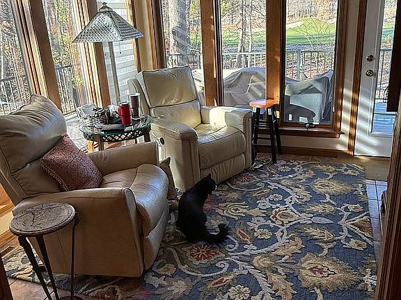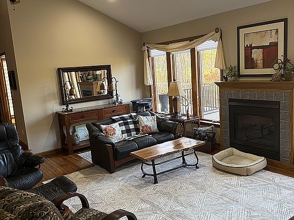 Gas fireplaceTreyed ceilingsVaulted ceilingsCeiling fansNew roofComposite deckHardwood and ceramic floors