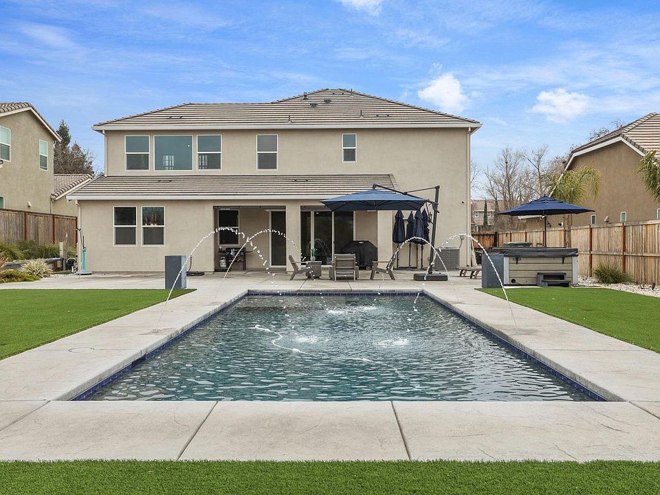 This breathtaking 2021 custom built masterpiece offers the perfect combination of elegance & modern sophistication. Be greeted by an abundance of natural light across the open floor plan, the spacious living room and gorgeous luxury vinyl floors flow seamlessly throughout. Gourmet kitchen, adorned with top-of-the-line stainless steel appliances, sleek quartz countertops, & an oversized island - a true chef's delight! Adjacent to the kitchen is a versatile dining area surrounded by panoramic views of the lush surroundings. Designed with sustainability in mind, this energy-efficient abode will not only reduce your ecological footprint but also provide immense comfort all year round.Escape into tranquility as you retreat to your backyard haven. Lounge by the sparkling saltwater pool or under the covered patio while surrounded by lush landscaping that adds privacy & charm.Office with french glass doors downstairs. Upstairs there is a master suite leading directly into a convenient laundry room.Unwind in your private oasis complete with a spa-like ensuite bathroom featuring dual vanities, a soaking tub, separate shower, & a spacious walk-in closet. Two additional generously sized bedrooms provide comfort and privacy for loved ones or transform into a gym!