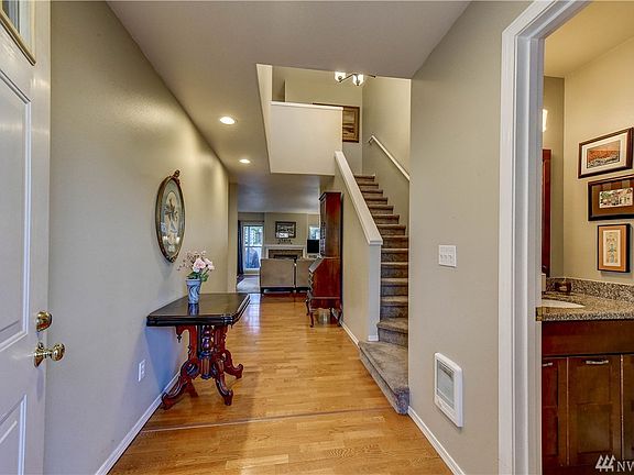 Beautifully updated townhouse in the wonderful and well maintained community of Newport Cove. Gorgeous hardwood floors throughout most of the home including the bedrooms. Great room concept w/ gas fireplace in the family room open to the dining rm w/ access to the fenced-in backyard and kitchen w/ cherry cabinets, granite counters and stainless steel appliances. Spacious master suite w/ remodeled bath - painted cabinets, quartz counters and large master. Attached 2 car garage. Great location - close to freeway access, Boeing, shopping and great Mukilteo schools.