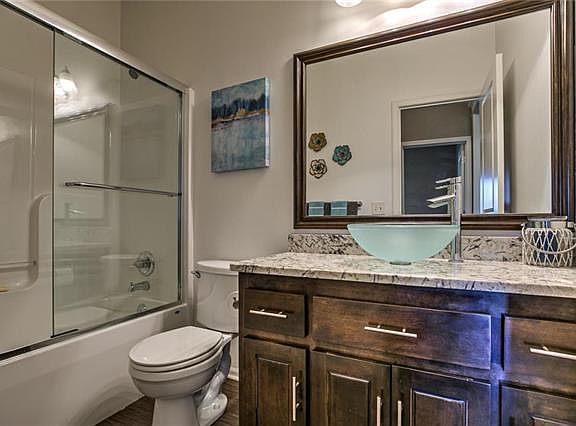 Gorgeous reverse 1.5 story home in sought after Brentwood subdivision has 4th non-conforming bedroom in basement! Beautiful, white kitchen w/large granite island, gas range, walk-in pantry & spot for beverage fridge! Great room features hardwood floors & floating, remote start fireplace! Main floor master has large walk-in closet & master bath w/tile, double head shower! Finished basement w/wet bar that holds full size refrigerator! Relax outside on your large patio w/built in fire pit overlooking fenced back yard!