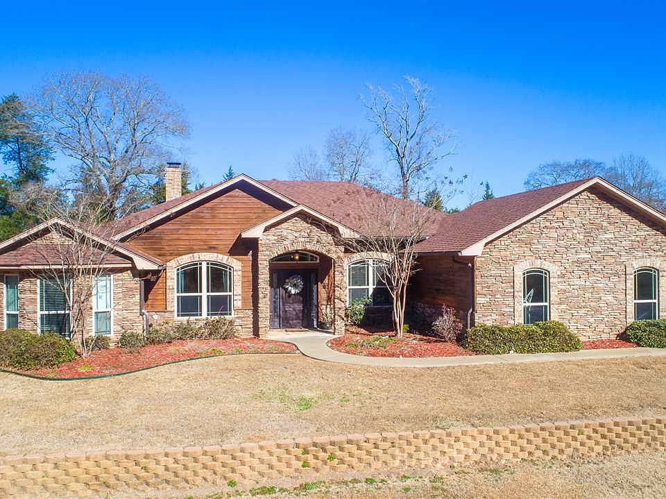 Everything you could want on 10 acres in between Longview and Hallsville. Custom built in 2010, this 5 bedroom home has so much to offer: open floor plan, wood floors, bonus room, great storage, fabulous outdoor area with a heated pool, hot tub, fire pit, large covered patio, storage building, dog kennels, private gated entry, beautiful pond with pier stocked with bass and catfish. Set up your showing appointment for this private retreat only 5 miles from Longview and 2 miles from Hallsville.